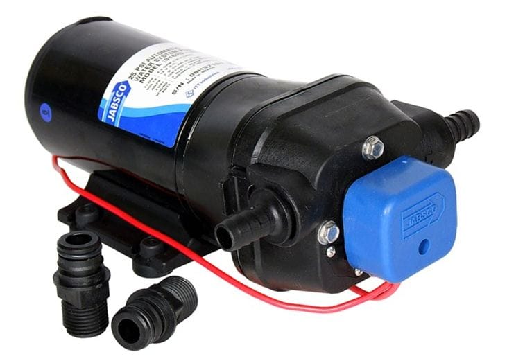 Η πρεσσοστατική αντλία παροχής νερού JABSCO PAR MAX 4 είναι για 4 και παραπάνω παροχές. Μέγιστο ύψος άντλησης 1,5m. Το μοτέρ παρέχει θερμική προστασία από την υπερθέρμανση.