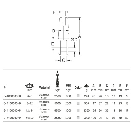 Κατάλληλο για αλυσίδα 12mm, working load 3200 kg ,όριο θραύσης (breaking load) 4100 kg